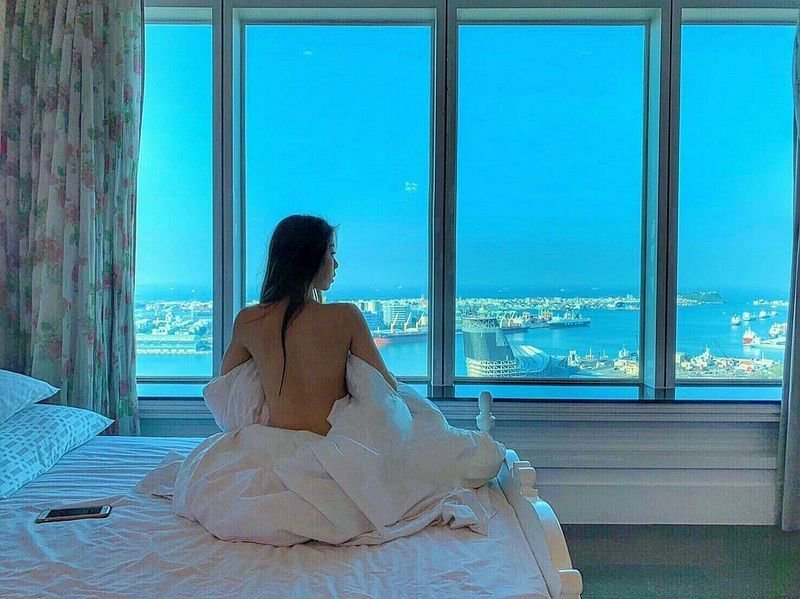 鹅肉女孩郑方婷美腿、丰胸通通有,性感身材如浪一般挡不住